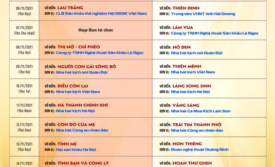 Liên hoan kịch nói Toàn quốc - 2021 diễn ra từ ngày 05 đến ngày 16 tháng 11 năm 2021 Tại Nhà hát Tháng Tám.